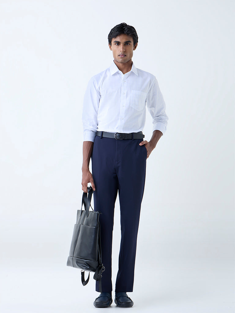 This white checkered shirt from WES Formals offers a crisp update to your weekday essentials. Tailored in a slim-fit silhouette and crafted from pure cotton, it delivers breathable comfort with a polished finish. Designed with a classic collar, button-up front, and full sleeves, it’s complete with a neatly placed chest pocket.