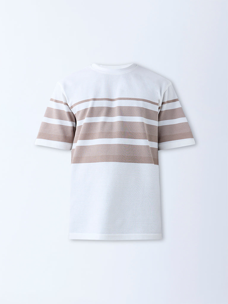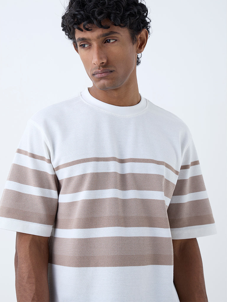 This brown striped tee from WES Lounge offers a refined spin on relaxed essentials. Crafted from a premium cotton-blend fabric, it’s shaped in a comfortable relaxed fit with a crew neck and short sleeves.