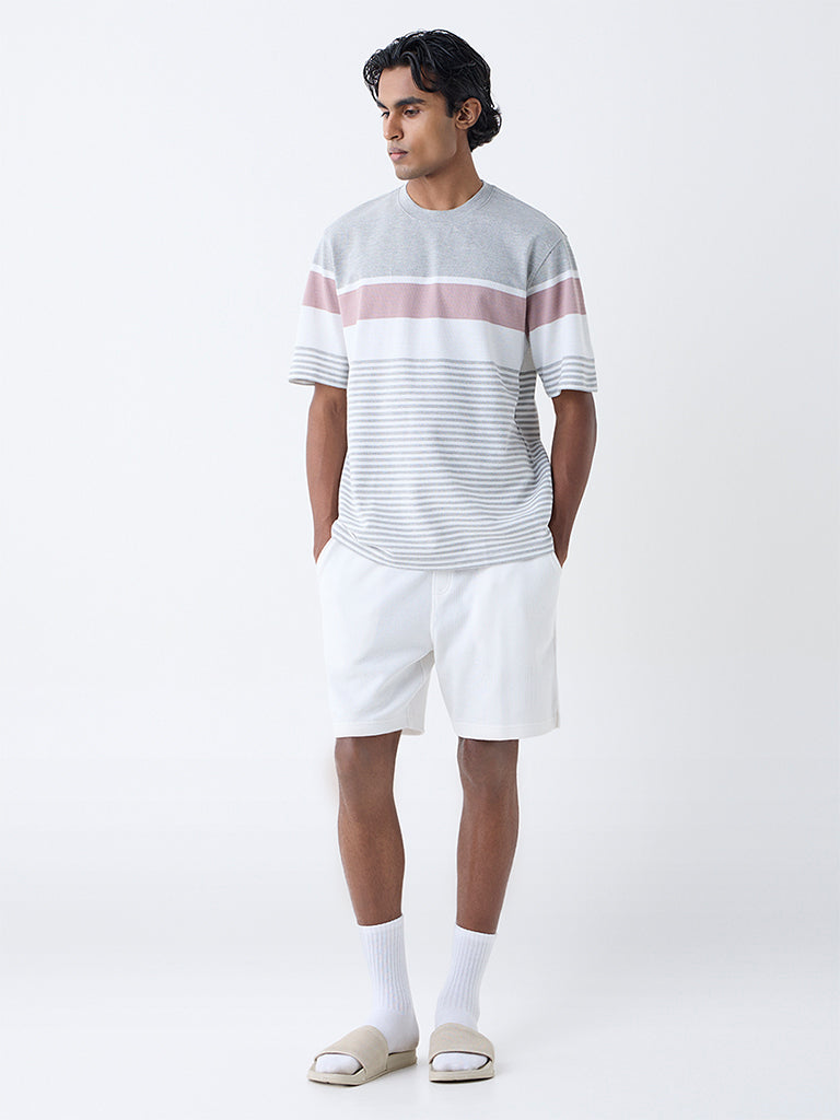 This grey t-shirt from WES Lounge is crafted from a soft, lightweight fabric for all-day ease. Detailed with self-stripe patterns, it features a round neck and short sleeves for a laid-back appeal. Cut in a relaxed fit, it brings together comfort and everyday versatility.