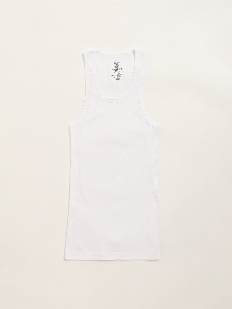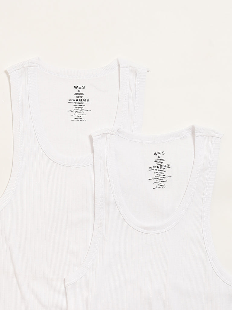 WES Lounge presents this convenient pack of two sleeveless drop needle vests in a pristine white hue. Crafted from pure cotton, these vests offer both comfort and breathability, perfect for layering or wearing alone on warmer days.