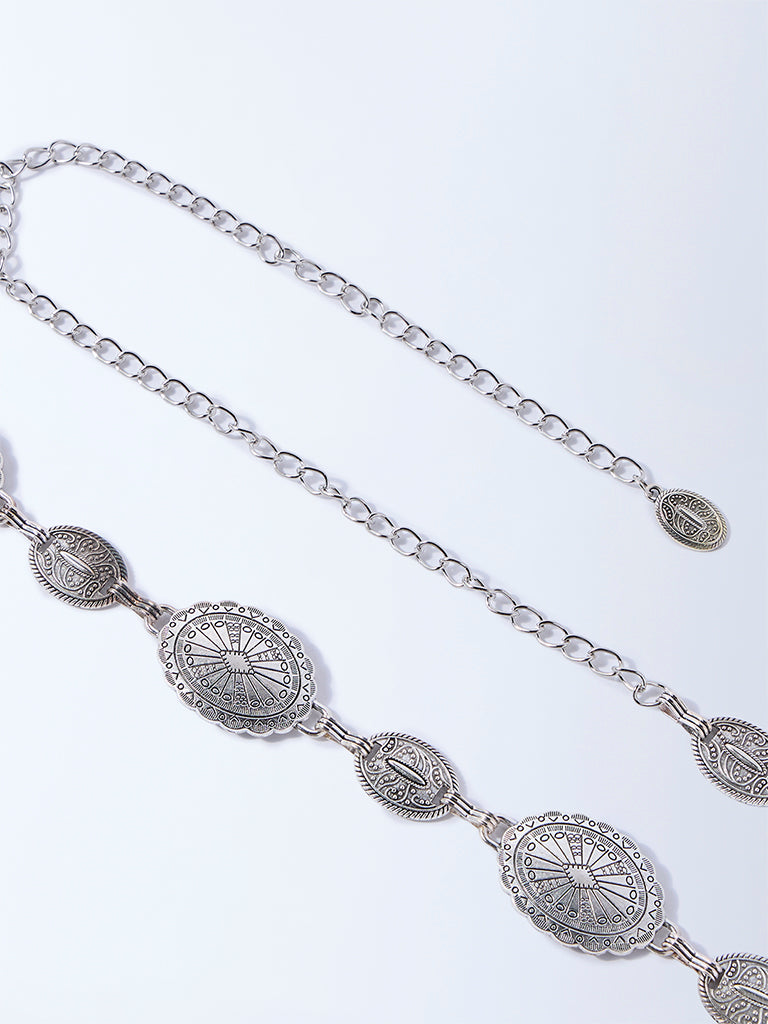 Channelling a vintage spirit with modern versatility, this silver concho-link belt from Westside Accessories is crafted with intricately detailed links that catch the eye with every movement. Its ornate design nods to Western-inspired charm while seamlessly styling into contemporary wardrobes. Whether cinched at the waist over dresses, or paired with high-rise trousers, it delivers a statement finish that turns even the simplest outfit into something unforgettable.
