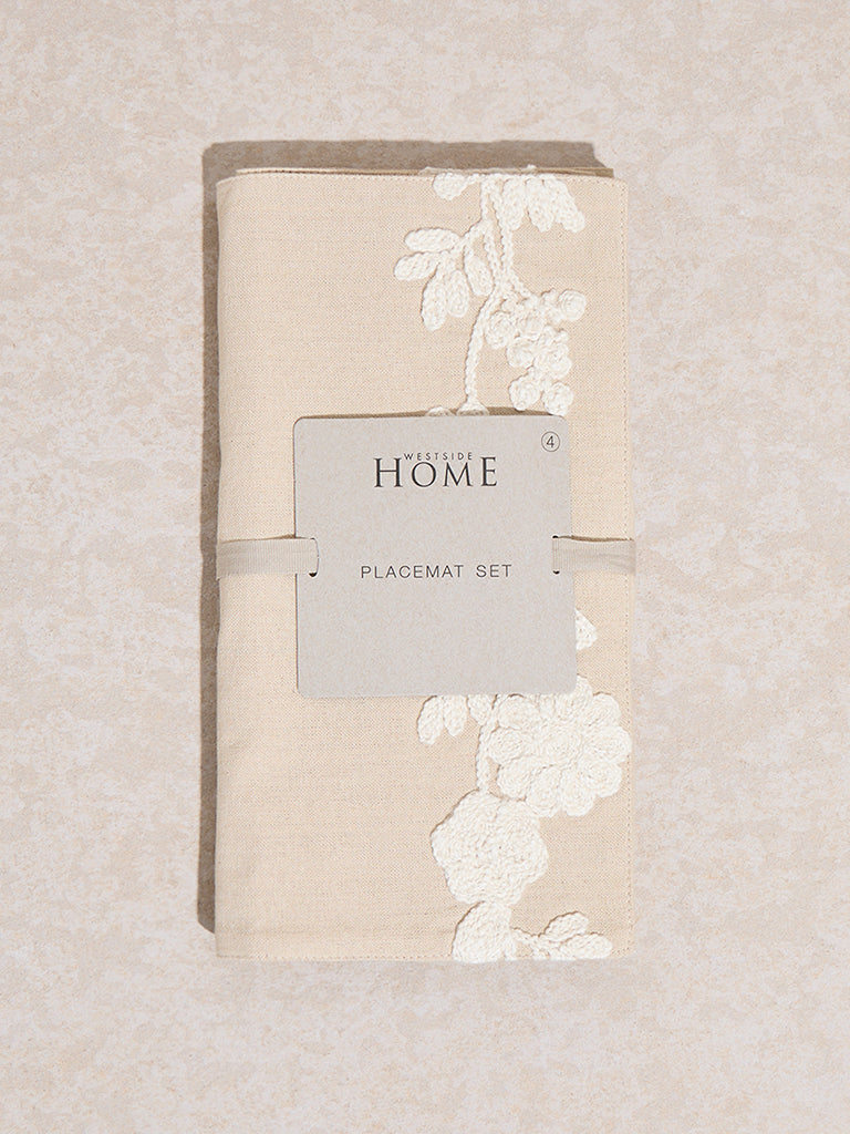 Transform your dining space with this set of four placemats from Westside Home. These placemats feature delicate floral embroidery in soft beige tones, exuding a timeless charm that complements any table setting. Crafted from premium materials, they offer durability and style, protecting your table while adding a touch of elegance. Ideal for everyday use or special occasions, these placemats create a warm and inviting atmosphere, making every meal a delightful experience.