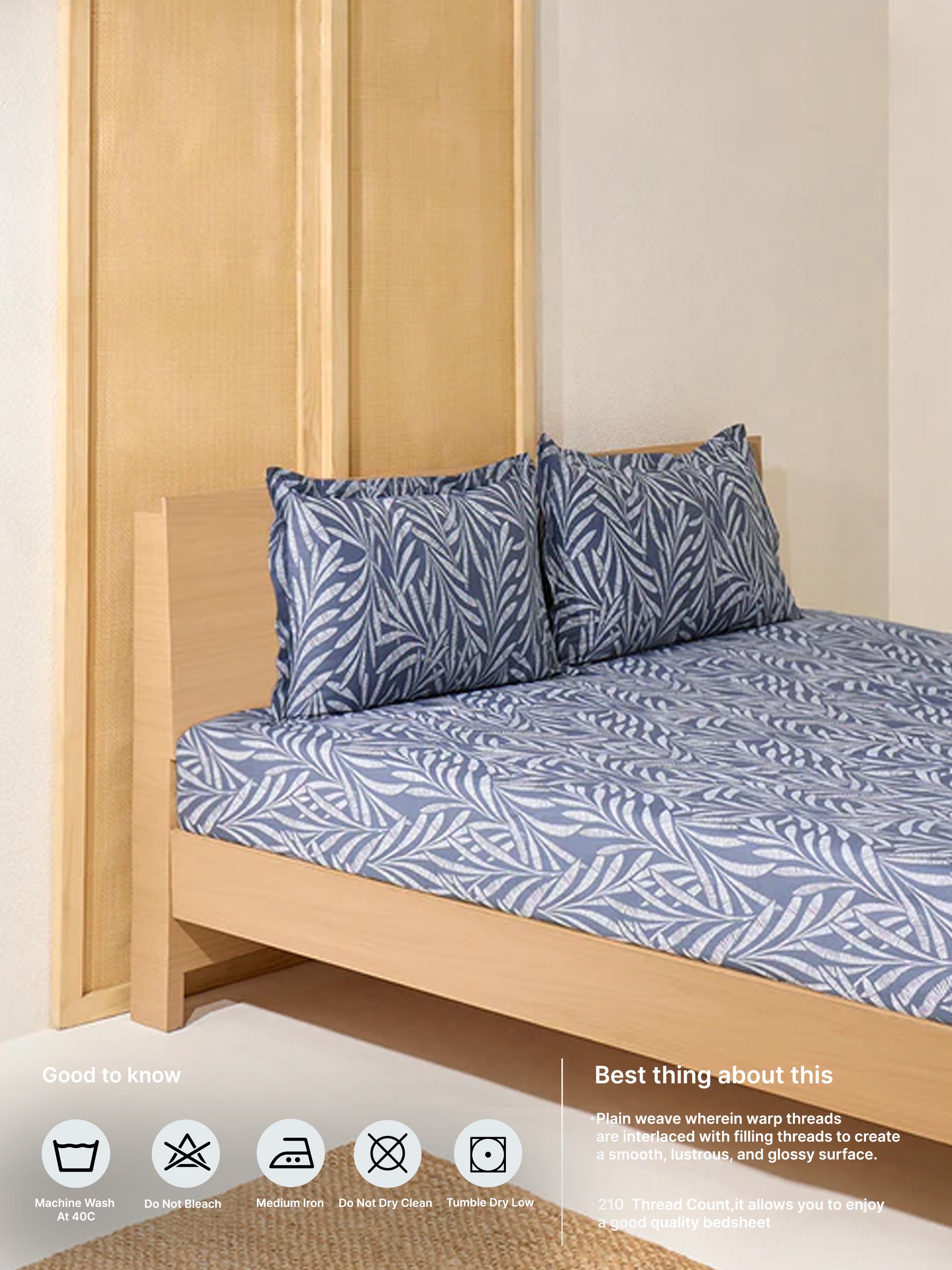 Bring the calm of nature indoors with this dusty blue queen-sized bed fitted sheet and pillowcase set from Westside Home, featuring a graceful foliage print that adds a botanical touch to your bedroom. Made from breathable fabric with a snug fit for a hassle-free bed-making experience, this set includes matching pillowcases to complete the look. The subtle design pairs beautifully with both minimalist and layered bedding styles—perfect for everyday comfort with a fresh, nature-inspired vibe.