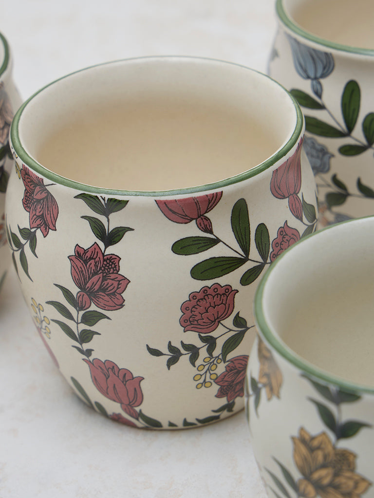 Bring a touch of vibrant charm to your kitchen with this set of four multicolour floral printed kullars from Westside Home. Each kullar features a beautifully detailed floral print in a variety of bright hues, adding a lively and artistic flair to your tableware. Crafted from durable material, these kullars are perfect for serving traditional beverages or as a decorative element for your home. Ideal for both casual use and special gatherings, they offer a blend of practicality and style.