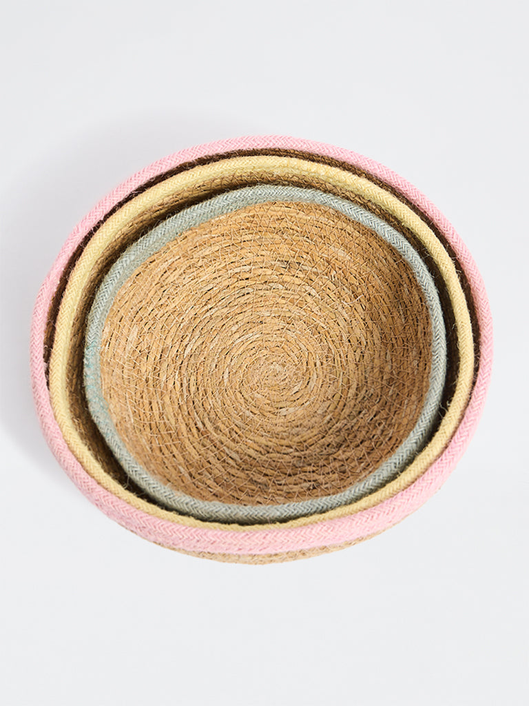 Designed to organise with character, this set of three round baskets from Westside Home brings colour, texture, and flexibility into everyday living. Woven with a tactile finish and layered in multicolour tones, each basket offers a stylish way to store throws, toys, magazines, or laundry essentials. The varied sizes allow for easy nesting or individual use across rooms, making them as decorative as they are practical—perfect for homes that value lived-in charm with thoughtful design.