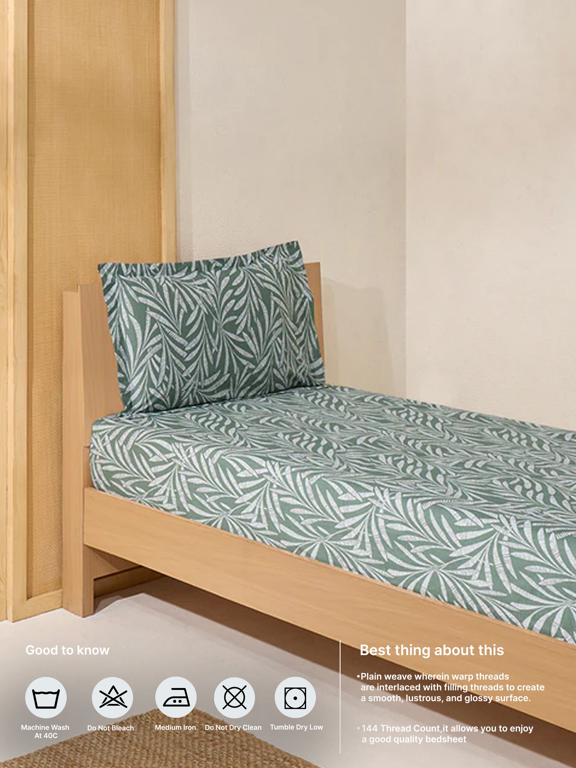 Delicate in detail, this single bed fitted sheet and pillowcase set from Westside Home is printed with graceful olive foliage—perfect for adding a natural touch to compact spaces. The fitted sheet ensures a snug fit that stays put through the night, while the included pillowcase echoes the serene print. Ideal for guest rooms or everyday use, this set brings quiet charm and dependable comfort to your bedding collection.