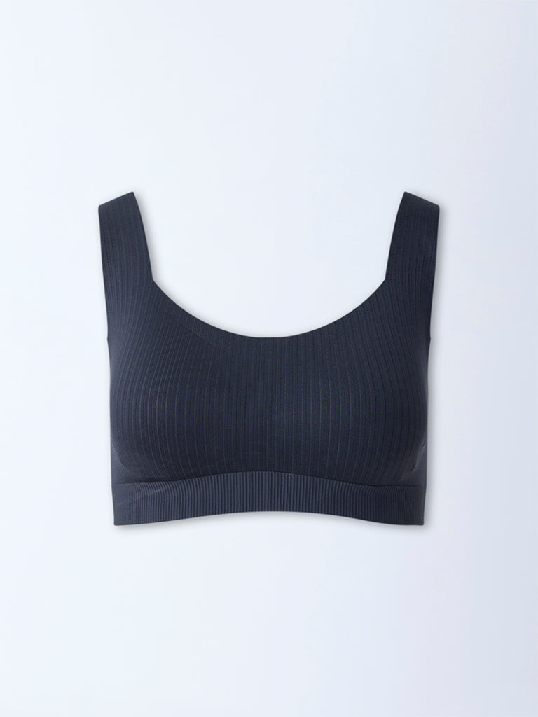 This black bra from Wunderlove is your everyday anchor. Made from a premium self-striped fabric with a subtle sheen, it offers padded cups for a sculpted silhouette and a secure back closure for dependable support.
