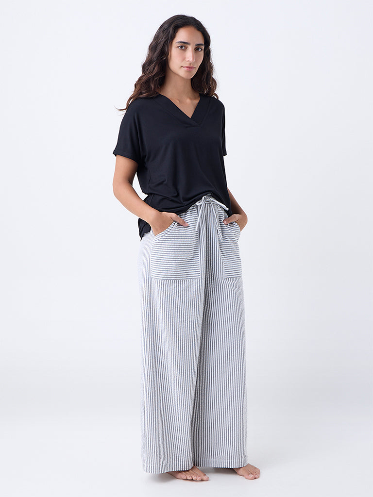Wunderlove brings this black top is styled with a v neck, a brief button placket and short sleeves. Crafted from a soft high-quality fabric for all-day comfort, this minimalist design showcases ribbed texture for a tactile feel. This is a versatile staple for both everyday wear and laid-back activities.