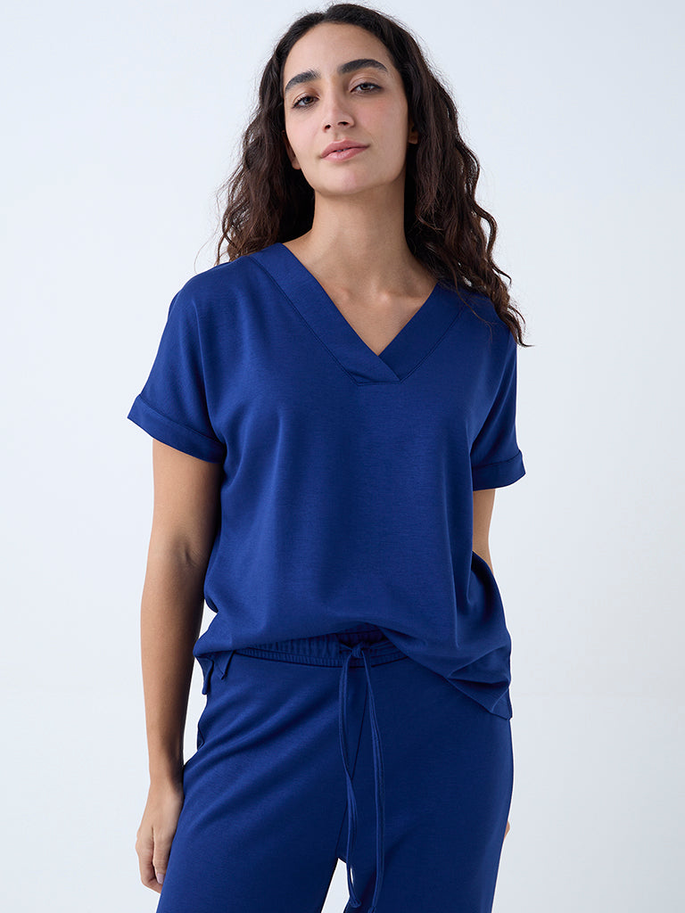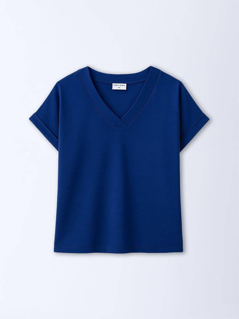 Update your everyday staples with this blue solid top from Wunderlove. Featuring a V-neck and relaxed dolman sleeves, it's cut from a breathable fabric for a flattering fit.
