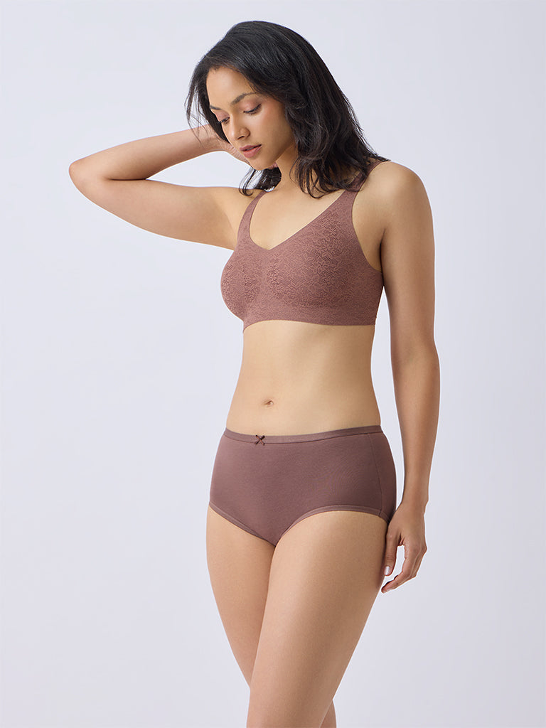 Everyday comfort starts with Wunderlove, offering a trio of briefs in soft brown tones. The pack includes a brown solid pair, a floral-printed beige version, and a micro-printed cream variant for easy rotation. Crafted from a breathable cotton-blend fabric that feels smooth and gentle against the skin. Hi-rise coverage provides a secure, supportive fit through the waist and hips. Finished with soft elasticated edges that stay put without digging in.