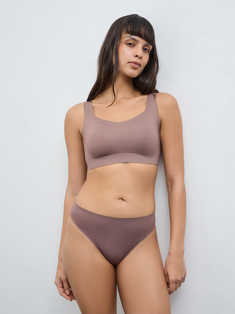 Refine your everyday support with this brown bra from Wunderlove, designed for comfortable daily wear. Crafted from an ultra-soft fabric, it sits gently against the skin for all-day ease. The subtle self-striped texture adds definition, while maintaining a smooth, streamlined silhouette. Lightly padded cups offer natural shaping, with removable pads for adjustable coverage. A reliable innerwear essential that layers seamlessly under everyday outfits.