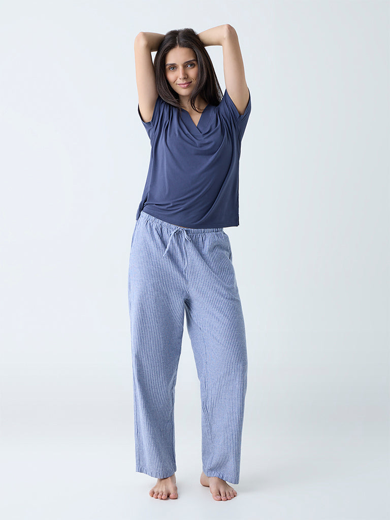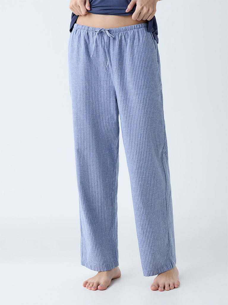 Perfect for chilling at home, these dusty blue pants from Wunderlove blend comfort with easy style. Designed with classic stripe patterns, they’re milled from high-quality fabric for all-day ease. An elastic waistband with adjustable drawstrings ensures a personalised fit, while functional pockets add a practical finish.