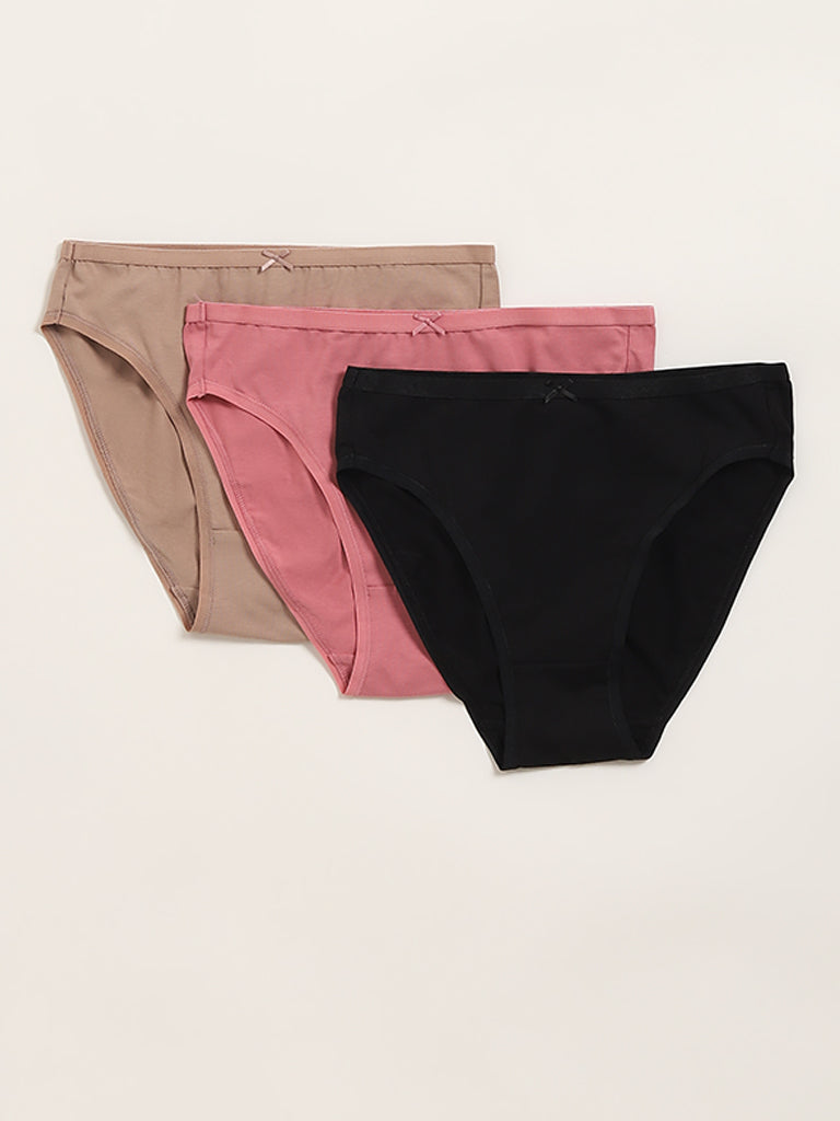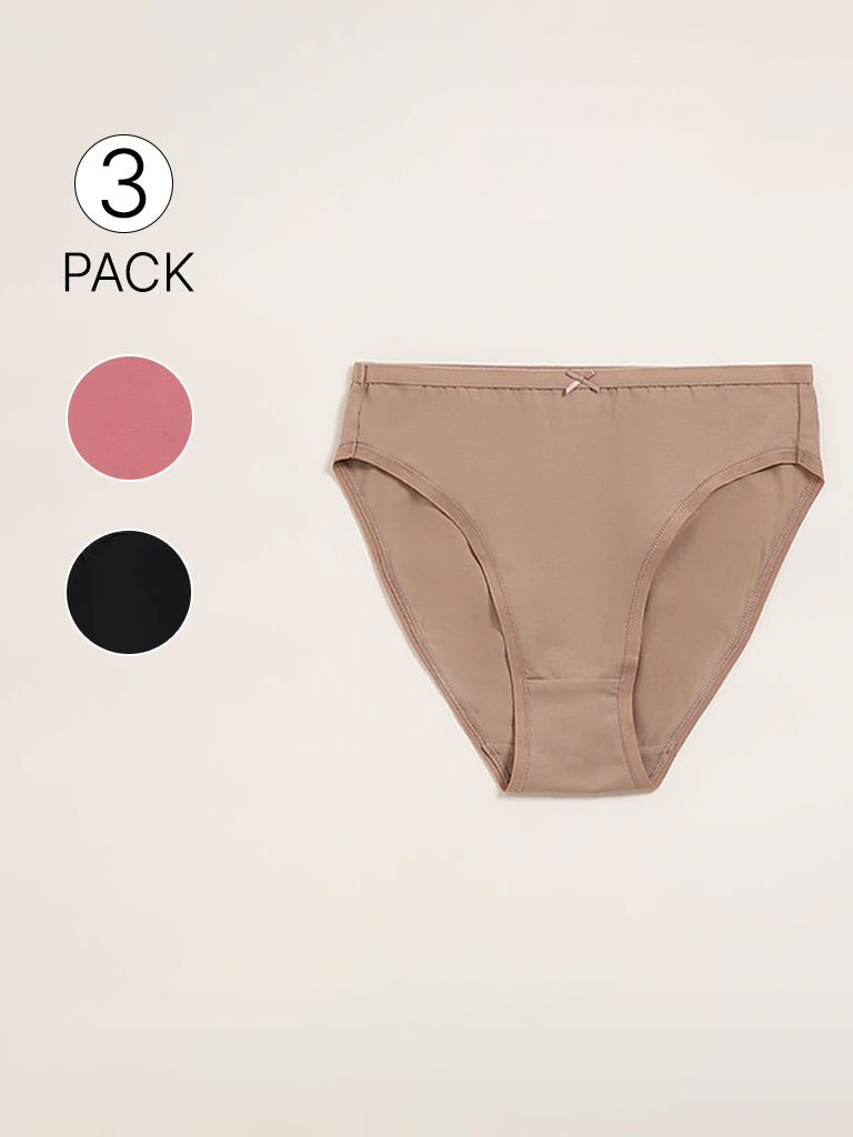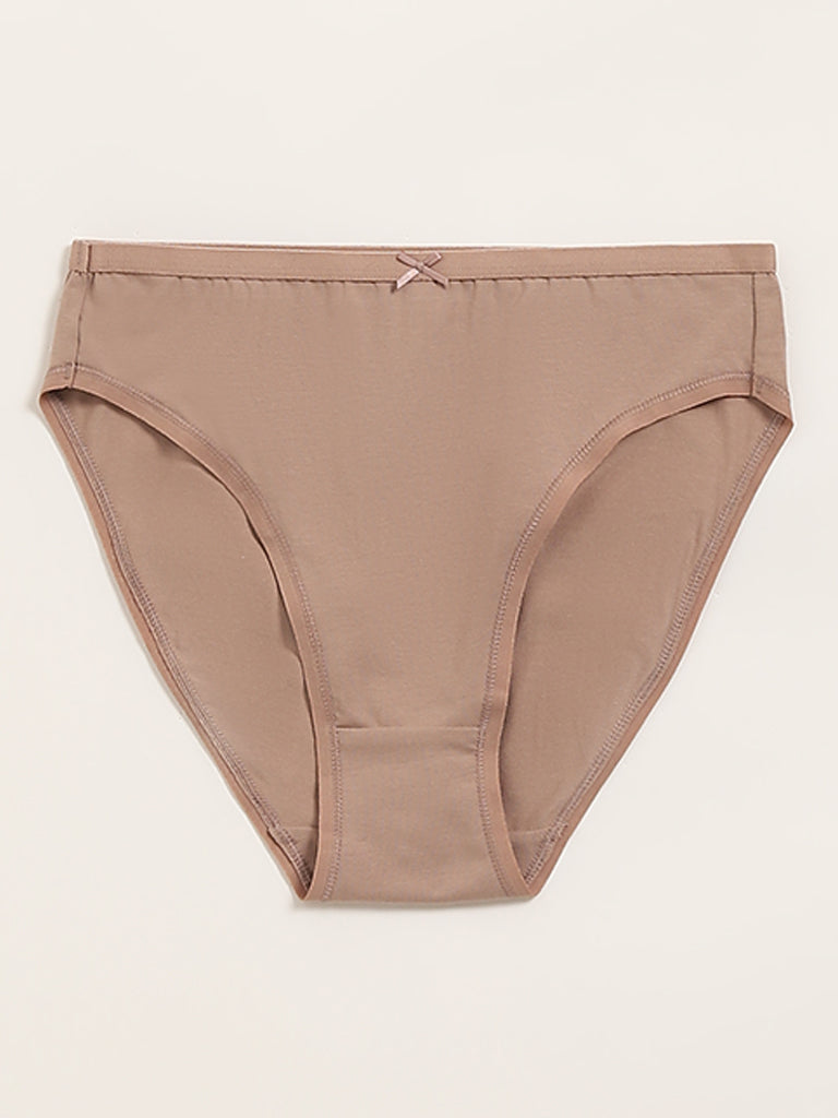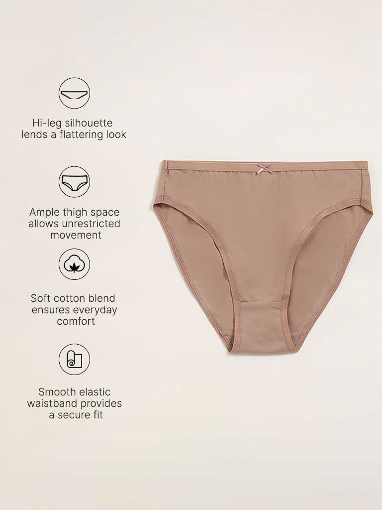 Wunderlove presents these light taupe briefs in a hi-leg silhouette. Made from a breathable fabric for all-day comfort, it provides medium coverage.