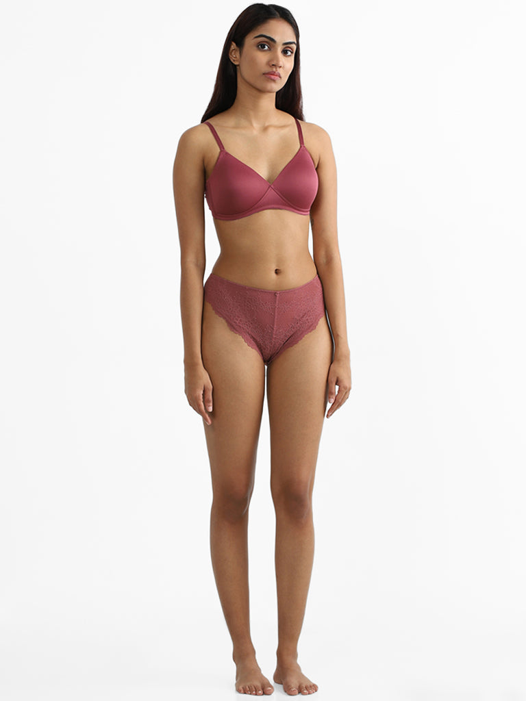 Crafted with meticulous attention to detail, these Briefs by Wunderlove offer a flattering fit and a delicate lace design that adds a touch of elegance and femininity. The mauve colour adds a pop of colour and style, making it a versatile addition to your lingerie collection.