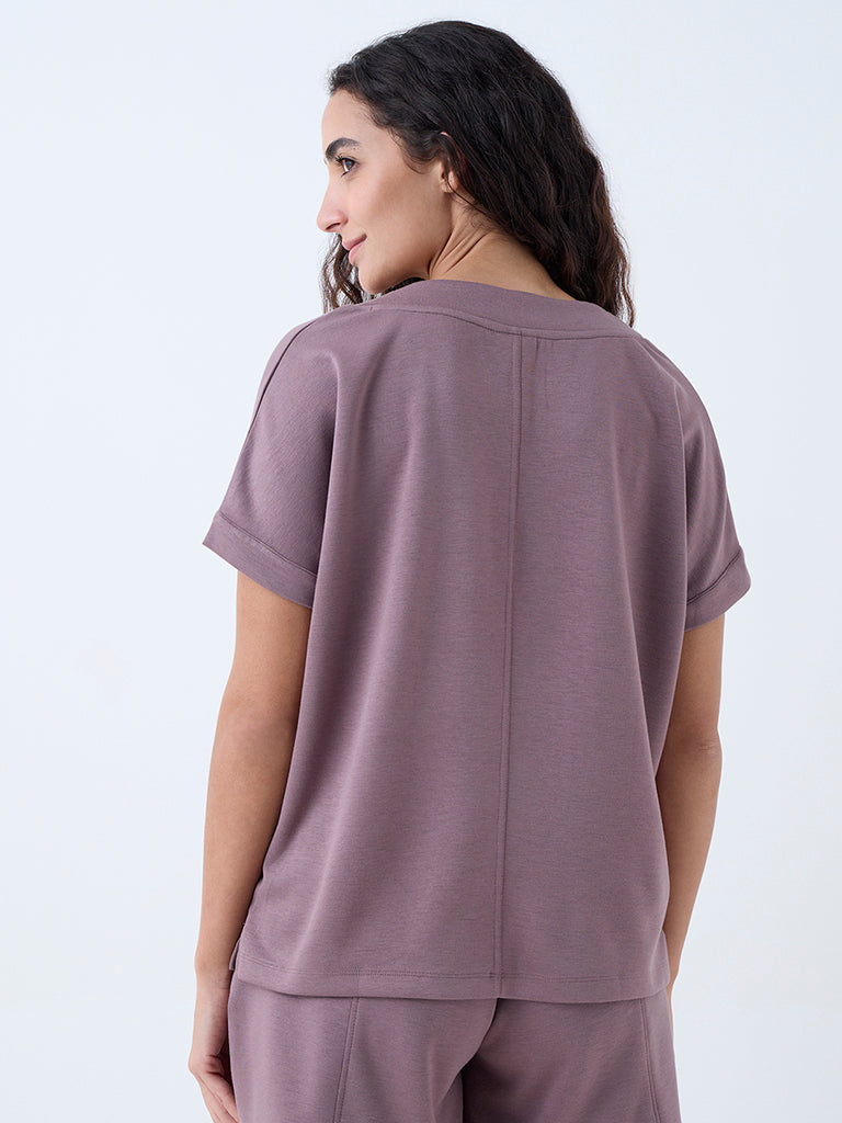 Add an elevated touch to your everyday edit with this mauve solid top from Wunderlove. Cut from a sumptuous fabric that drapes beautifully, it features a flattering V-neckline and relaxed dolman sleeves for an effortlessly refined silhouette.