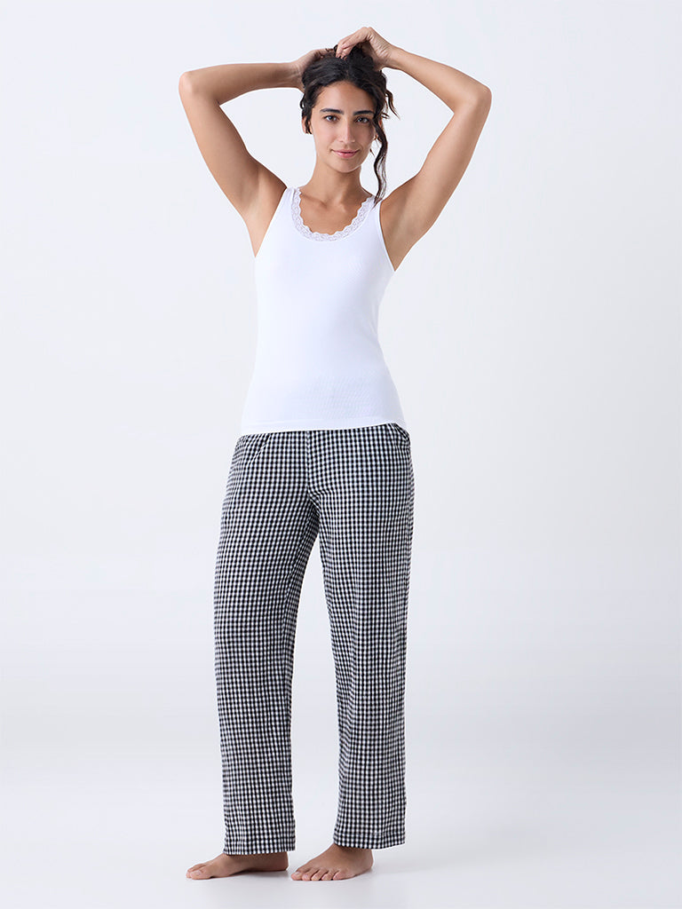 This white camisole from Wunderlove is styled with a round neckline edged with lace and a sleeveless silhouette for versatile wear. Crafted from soft fabric, it ensures comfort throughout the day while working as both a refined layering piece and a casual standalone style.