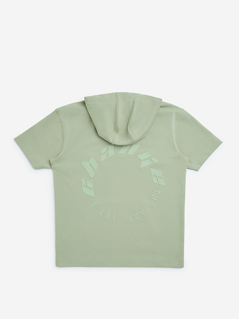 This sage hoodie from Y&F Kids is crafted from a breathable cotton-blend fabric for a comfortable fit. Featuring text detailing on the front, it comes with a hooded neck, attached hoodie with adjustable drawstrings, and a short sleeves cut for a sporty, relaxed vibe.