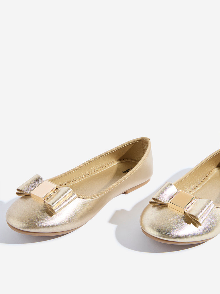 These gold ballerinas from Yellow bring a touch of elegance to special occasions with their shimmery finish and charming bow detail on the vamp. Crafted with a cushioned insole for lasting comfort and a textured outsole for better grip, they strike the perfect balance between style and practicality.