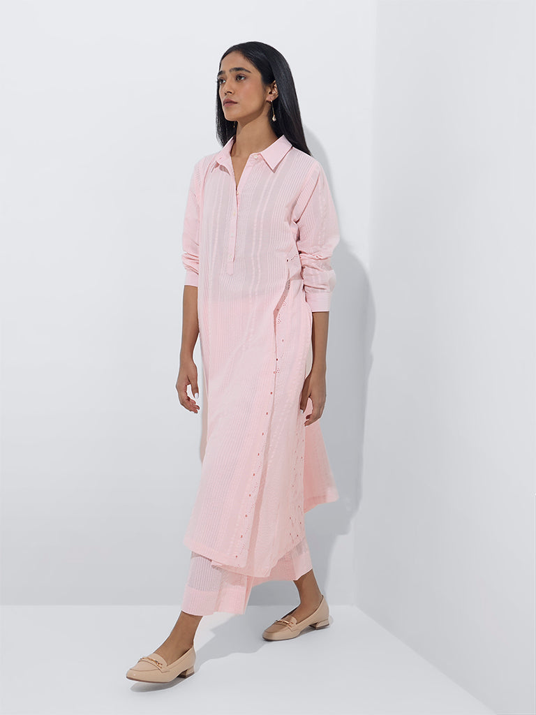 Crafted from a luxurious linen-blend fabric for unmatched comfort, these pink ethnic pants by Zuba are designed with an elasticated waistband for a secure fit and feature practical side pockets.